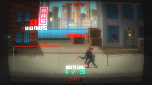 2、点击左右两侧控制角色攻击来犯的敌人,滑动屏幕可切换视角观察战场情况。