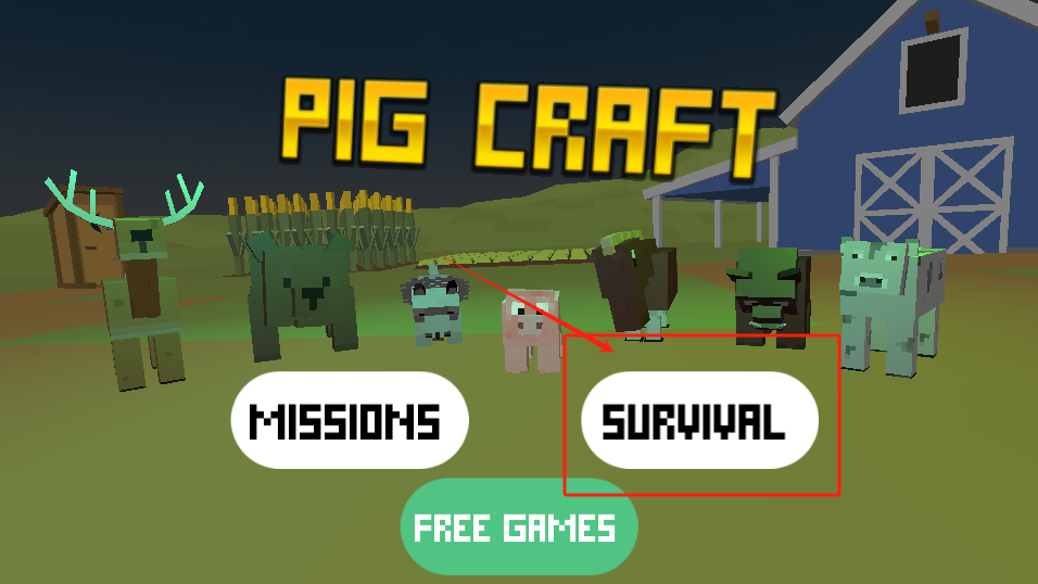 1、点红框里的SURVIVAL生存模式开始游戏,别点错MISSIONS任务模式。