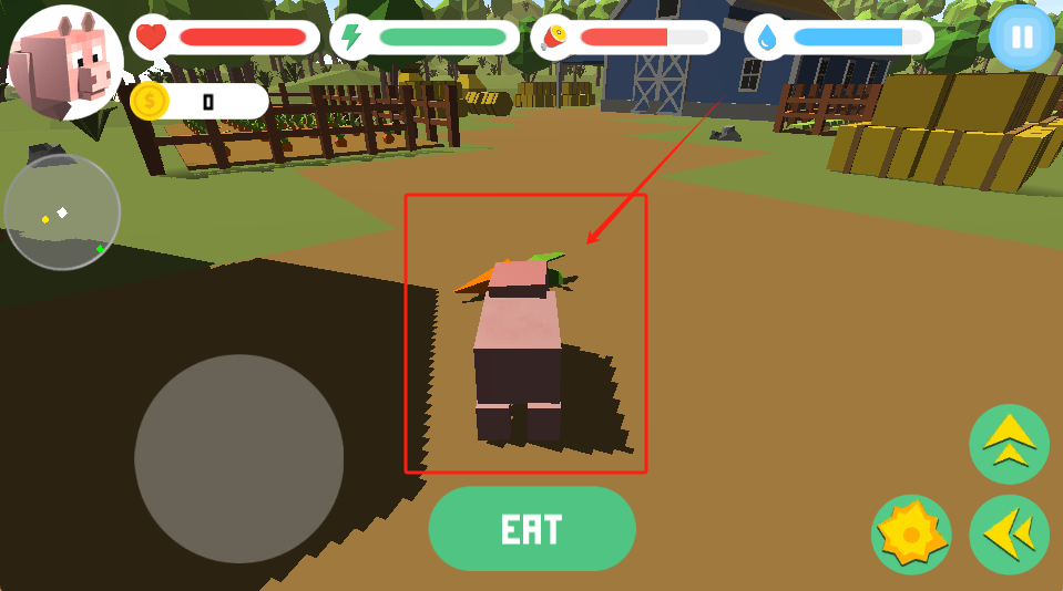 3、小猪饿了快按EAT吃胡萝卜,不吃早餐会掉体力。