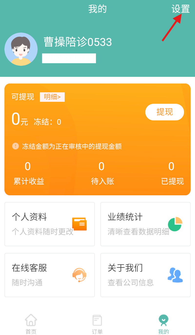 1、打开曹操陪诊软件,在底部导航栏中找到并点击 “我的” 选项,进入个人中心页面。