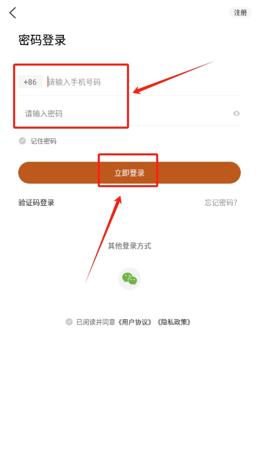 2、输入之前设置好的手机号密码登录信息,确认无误后点击登录按钮完成验证流程的操作。
