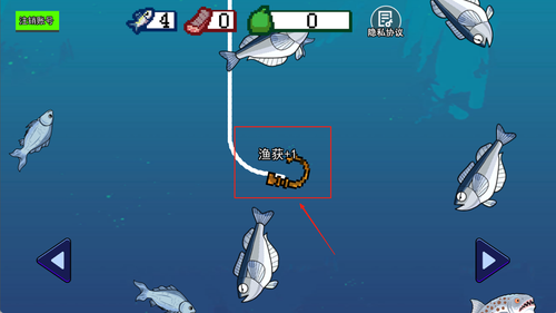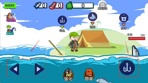 2、左侧控制渔船移动方向,右侧则是抛竿与收线按钮,滑动屏幕可切换视角观察海面变化。