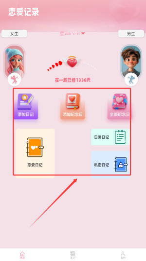 4、提供私密日记与共享空间两种模式,既能保留个人独处思考的天地,也可选择性分享甜蜜时刻给伴侣。