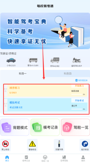 驾证驾考模拟宝科目一到科目四的题全都有,和真实考试题库同步更新。你可以按顺序刷题,也能随机模拟考试,做错的题会自动收集,方便重点复习。软件里还有3D车内视角,能看清楚油门、刹车、方向盘这些关键部件,比死记硬背更直观。