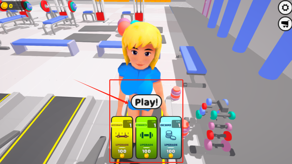 2、看女孩在跑步机上奔跑,点击屏幕加速冲刺完成Level1健身任务。