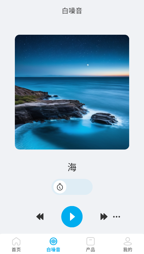 2、进入白噪音功能页,可选择海浪、雨声等多种自然音效,帮助放松身心或提高专注力。
