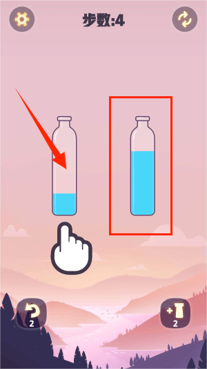 2、通过倾斜设备或滑动屏幕,将相同颜色的液体倒入同一个容器中。