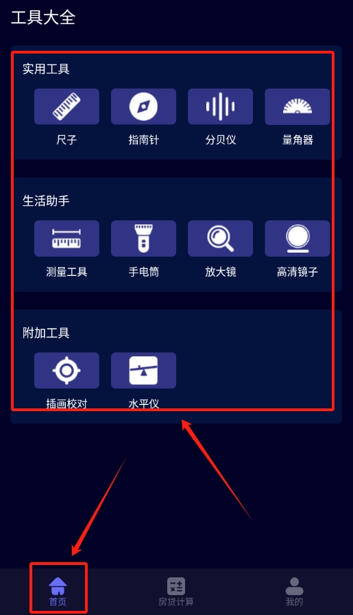 3、同意协议后进入软件,首页上有各种常用工具,排列得很清楚,想用到哪个工具,一眼就能找到,很方便。