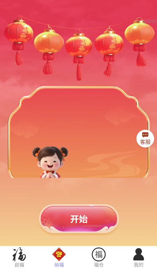 2、进入"纳福"专区后点击"开始纳福"按钮,系统将根据当日步数自动计算可获得的福气值。