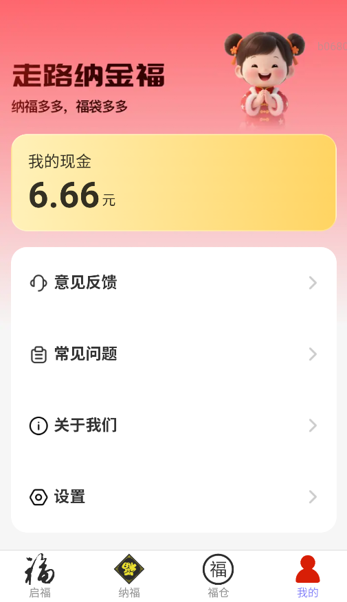 走路纳金福这个走路纳金福APP挺有意思的,边走边能攒点小钱。每天走的步数自动记下来,攒够了就能换钱,虽然不多但挺有动力的。还有日常任务可以做,做完领个红包。喜欢走路的朋友可以试试,反正平时也要运动,顺便赚点零花钱也不错。