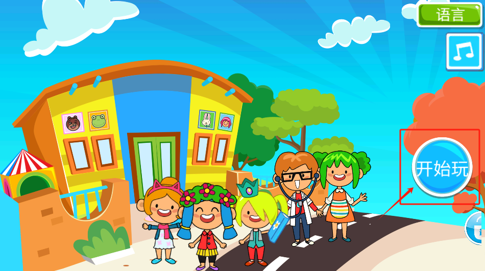1、点红框里的开始玩按钮,就能进入游戏,右上角还能选语言和听音乐哦。