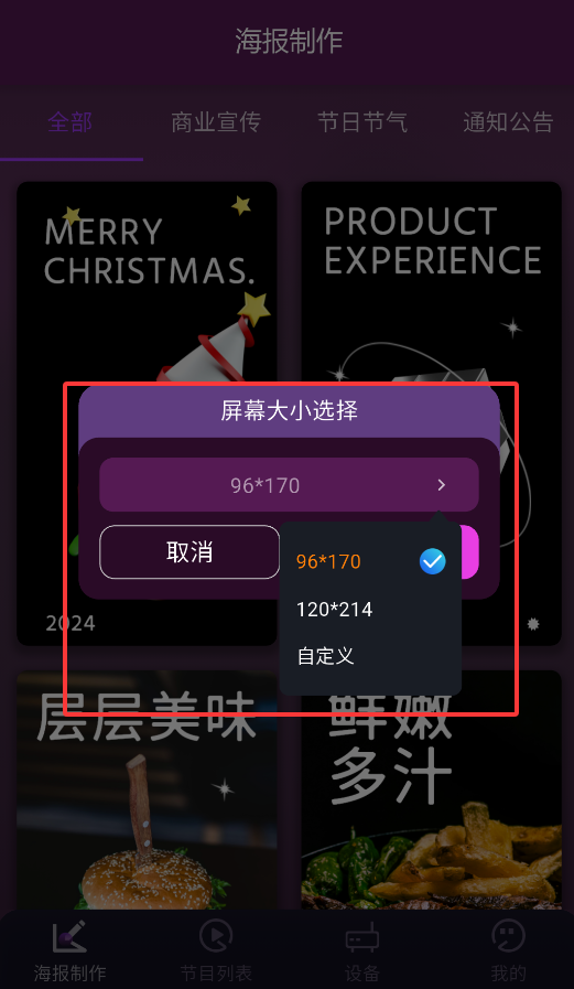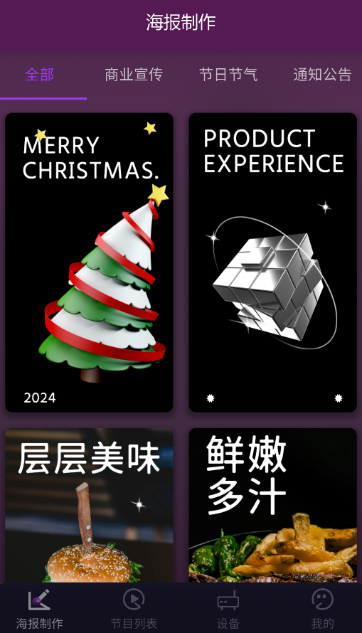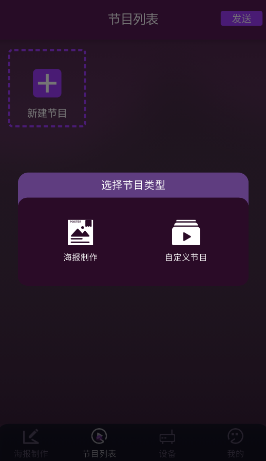 3、通过"节目管理"可以创建新项目,选择系统预设的海报制作方案或自定义专属节目类型。
