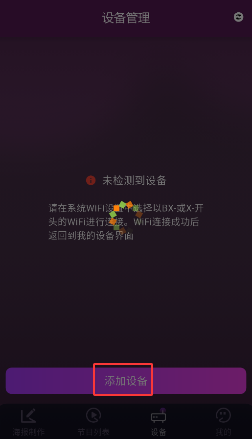 4、在"设备连接"页面点击"添加新设备",系统将自动扫描范围内可连接的显示终端设备。