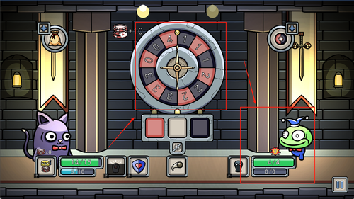 3、遭遇敌人时将进入轮盘战斗界面,选择下注、使用技能或发动特殊能力,合理利用资源击败对手并推进关卡。