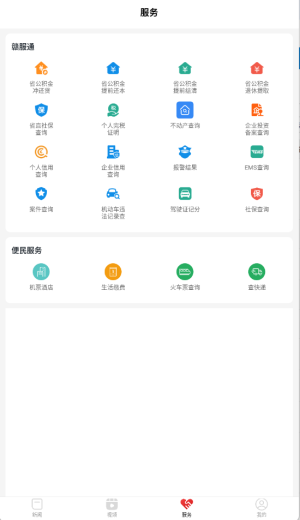 3、选择"服务"功能使用政务办理、生活缴费等多样化便民服务。