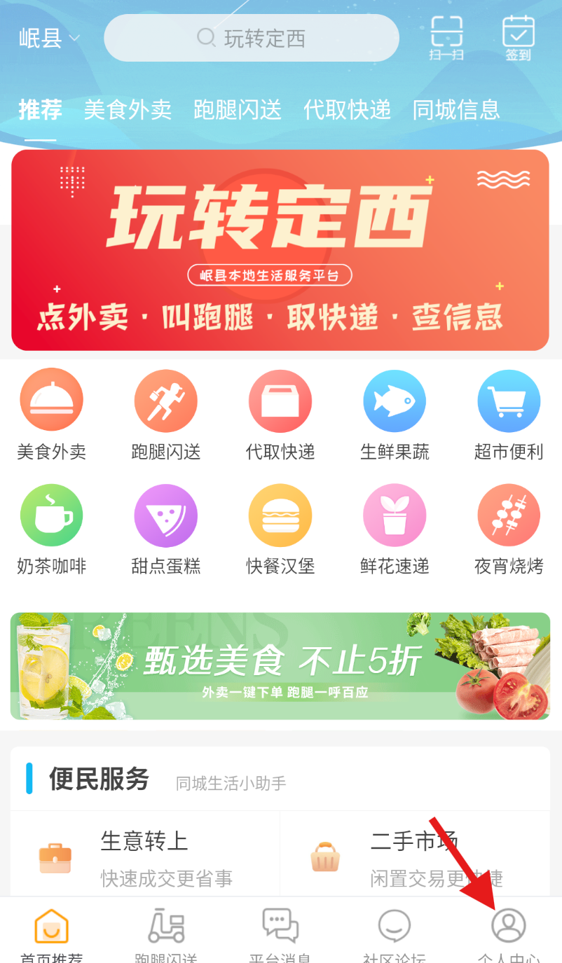 1、打开玩转定西软件,在导航栏中找到 “个人中心” 选项并点击,进入到与个人相关的功能页面。