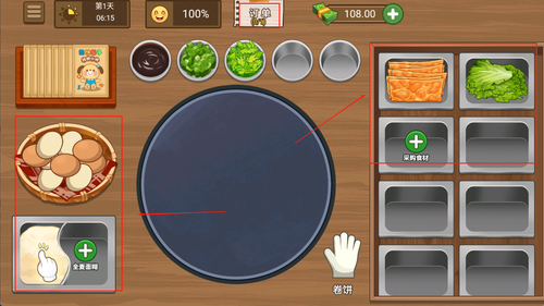 1、基础玩法围绕接单制作展开,玩家需根据顾客需求准确配比材料,在限定时间内完成煎饼制作获得金币奖励。