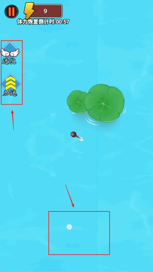 2、下侧控制移动方向,左侧用于加速或使用特殊技能,在面对强敌时快速反应躲避追击避免被吃掉。