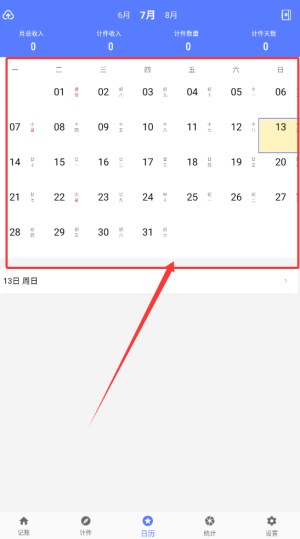2、只需输入每日完成的件数和单价,软件就能自动计算当日收入。