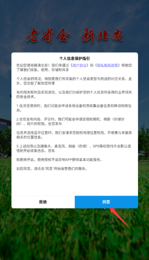 1、启动路演北安APP后,首次使用需阅读并同意用户协议和隐私政策,点击确认进入主界面。
