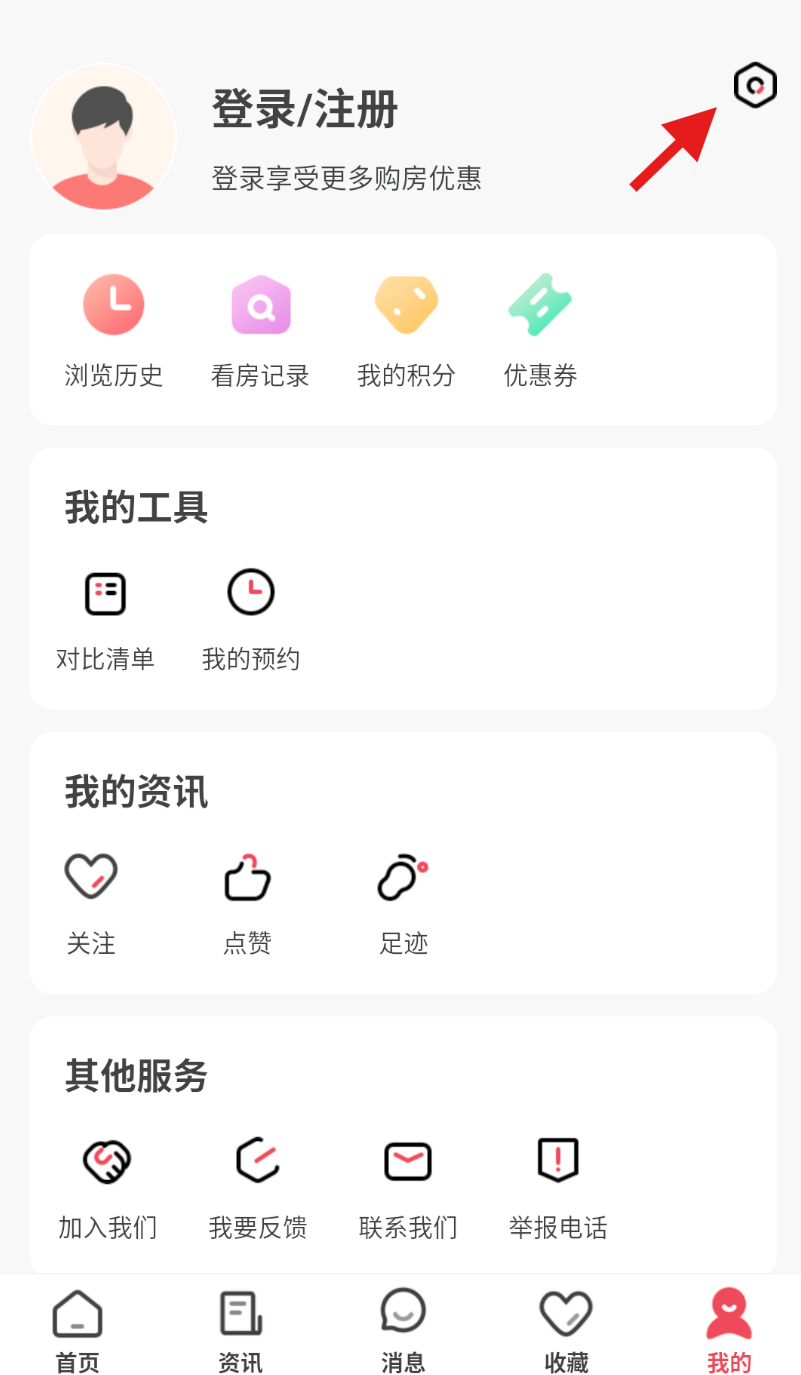 2、在 “我的” 页面中,找到右上角的设置图标并点击,进入到软件的设置界面。