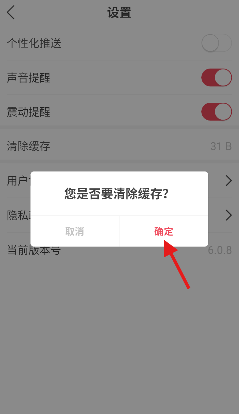 4、此时会弹出是否清除缓存的询问,确认后点击 “确定”,即可完成软件缓存的清除。