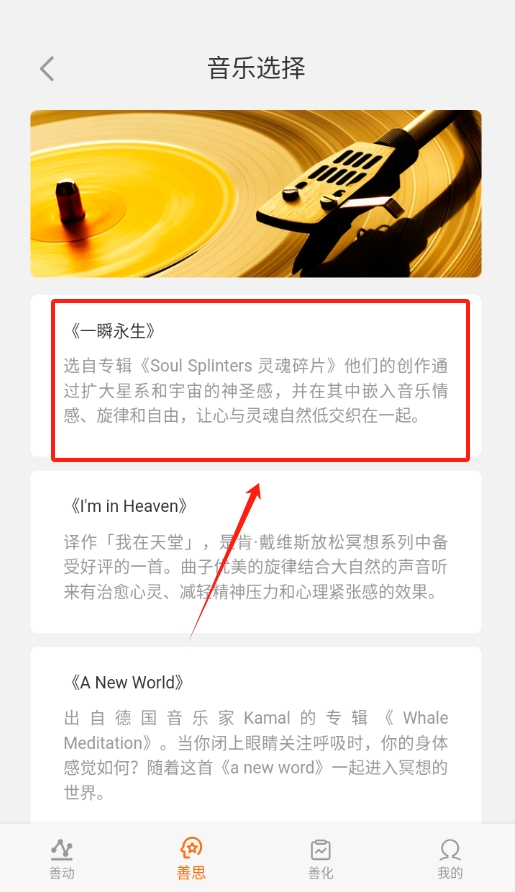 3、想放松的话,从提供的音乐中选一首喜欢的听着,搭配内视引导,能让身心更好地沉静下来。