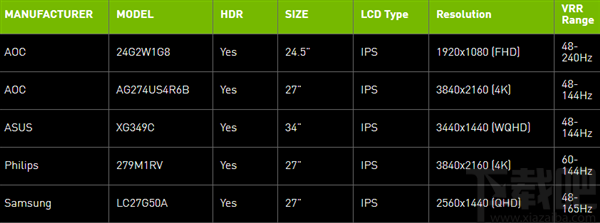 第二个重点升级是新增了5款G-Sync兼容显示器型号,具体如下: