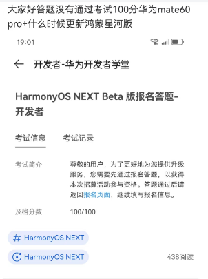 5、参与报名后需要完成HarmonyOS NEXT beta版答题,回答满分后即可抢先获得招募测试资格。(数量有限)