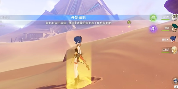 2、玩家需要拿出一个使用长枪武器的角色,然后在装备上这个派蒙的留影机就可以了。