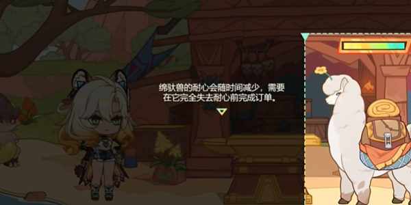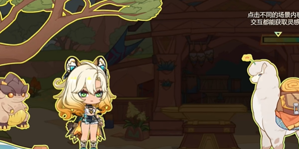 2、然后玩家需要注意这个右边这个羊驼的耐心,需要及时找到这个灵感(就是把能点的东西都点一遍即可,非常简单)。