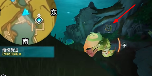 12、然后朝东南方向地图下角走,这个空中的位置有狗钩子的,所以可以直接过去。