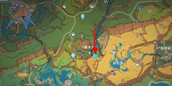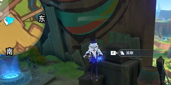 1、首先可以来到悬木人这边的传送点这个位置捡到一个【边缘绿油油的纸】这个道具,直接过来调查闪光点就行。