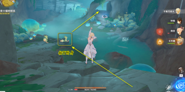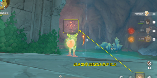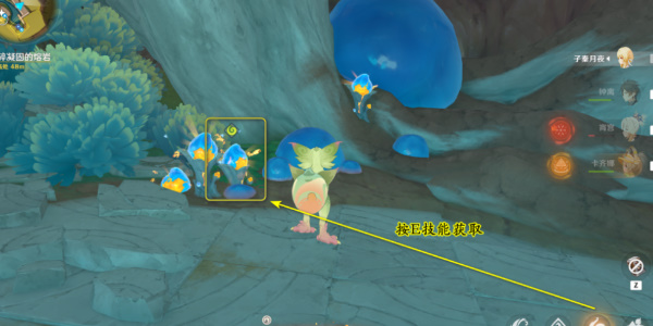 7、直接靠近之后长按e技能使用果实把这个岩石打碎。