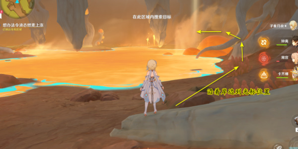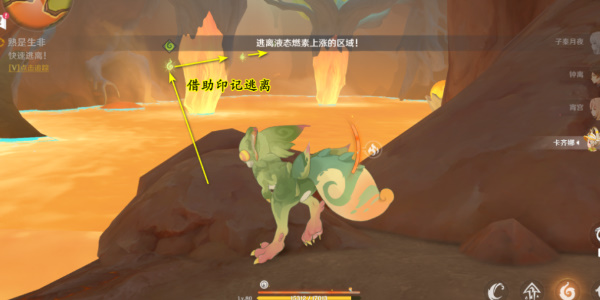 18、然后按照这个路线逃离就可以,最后玩家会掉到这个岩浆里面,这个是剧情而已,后面会被派蒙救起来的,不用担心。