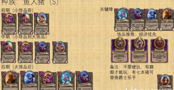 6、鱼人猪:这个阵容不要硬玩,有瞎眼才能玩,有七本猪可替换爵士乐手,强度也是非常高的。