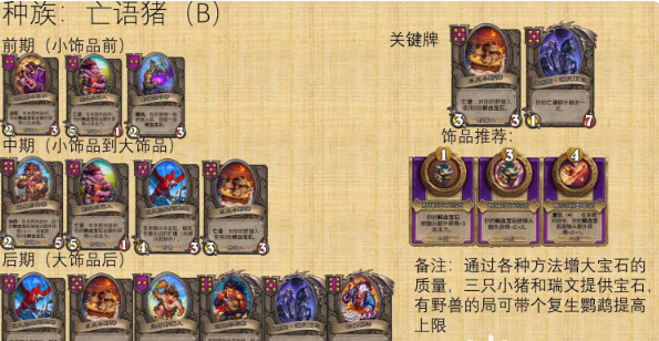 7、亡语猪:通过各种方法增大宝石的质量,三只小猪和瑞文提供宝石有野兽的局可带个复生鹦鹉提高上限。
