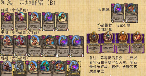 8、走地野猪:阵容灵活多变,主要以养宝石和获取宝石为主,宝石最好给狂战、翻倍、含碳等高质量单位。