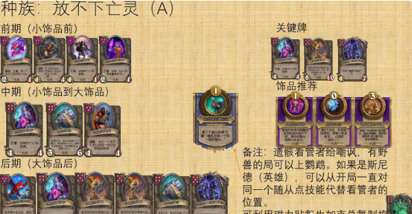 5、【放不下亡灵】遗骸看管者给嘲讽,有野兽的局可以上鹦鹉。如果是斯尼德(英雄),可以从开局一直对同一个随从点技能代替看管者的位置。