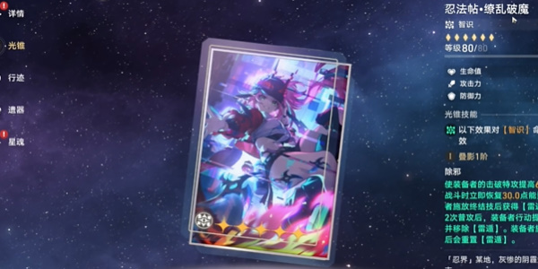2、这个角色的专属光锥是一个高贵的机制光锥,进入战斗立即恢复30点能量,然后乱破的天赋还有10点天赋,进入游戏之后可以做到1动就能开大了。