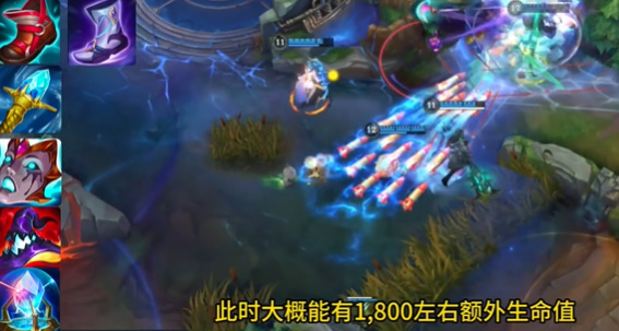 3、后面可以更换成为法穿也是可以的,然后第三个装备就可以使用这个冰杖,进一步增加生命值和法强,还有一定的减速效果。