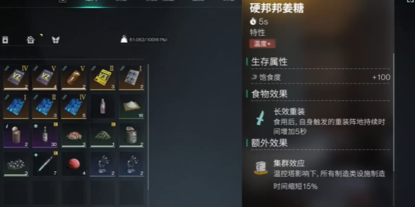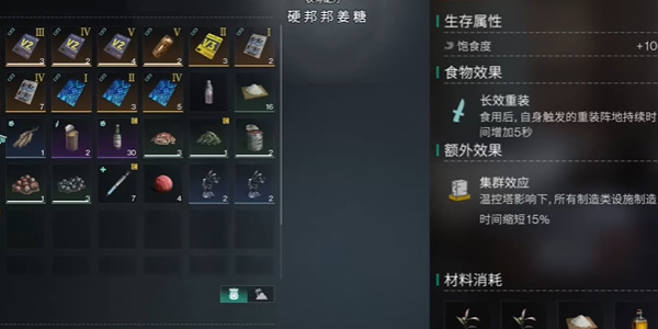 5、食物的效果是自身触发的重装阵地的持续时间增加5秒