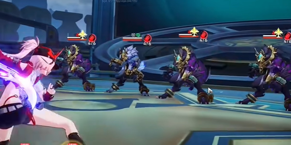5、然后其他小怪进入击破状态之后不管他们,使用普攻打中间的小怪,让两边的小怪恢复弱点,主角别开大招,加拉赫也别开大招。
