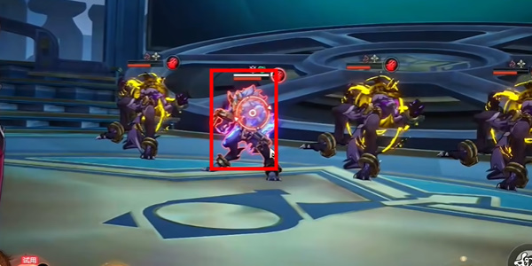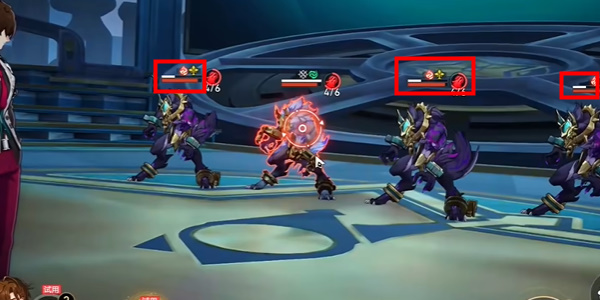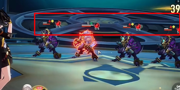 3、把这个小怪的弱点控制到一定的范围,然后其他的角色就是打中间的这个没有弱点的小怪,使用普攻就可以了。