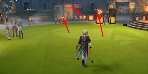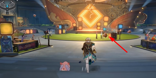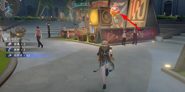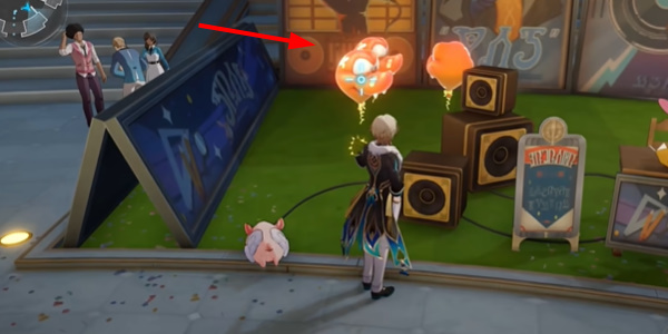 6、然后在这个舞台正对面大音箱这里就可以找到最后一个旋转气球。