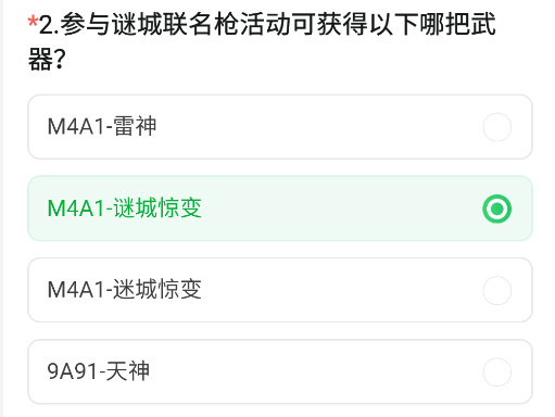 2、参与谜城联名枪活动可获得以下哪把武器?