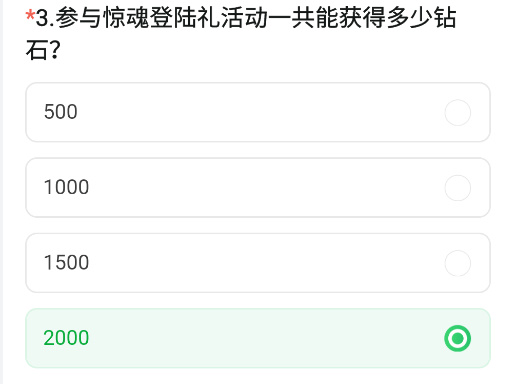 3、参与惊魂登陆礼活动一共能获得多少钻石?