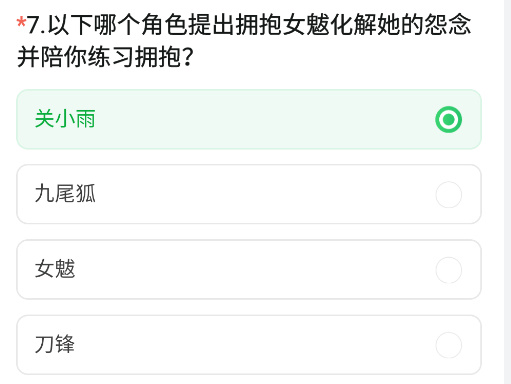 7、以下哪个角色提出拥抱女魃化解她的怨念并陪你练习拥抱?