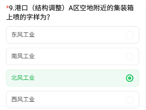 9、港口(结构调整)A区空地附近的集装箱上喷的字样为?