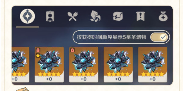 5、可能需要优先查看自己刚刚获得的圣遗物,按照时间或者词条都是非常简单的。